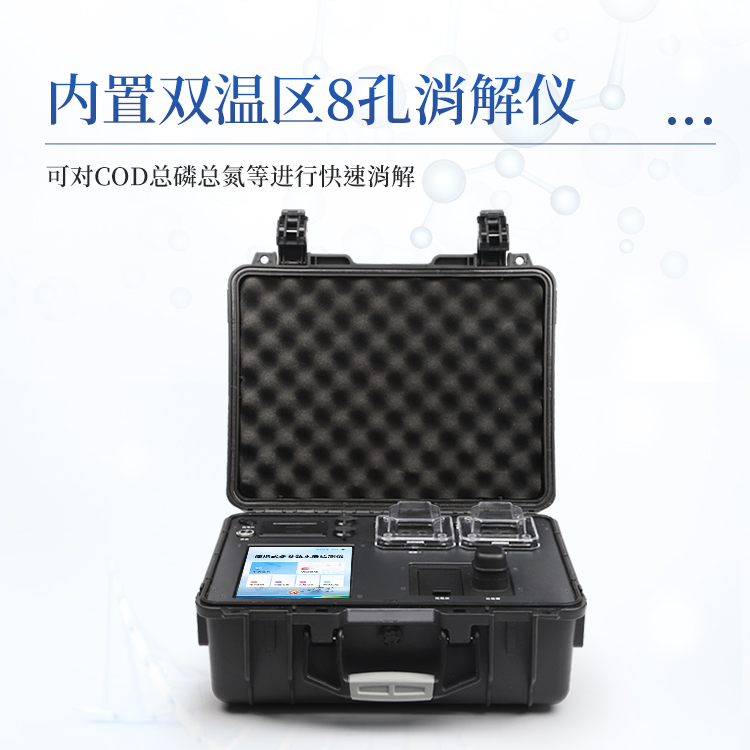 4、内置双温区8孔消解仪,左右温区独立控制,可对COD总磷总氮等进行快速消解。