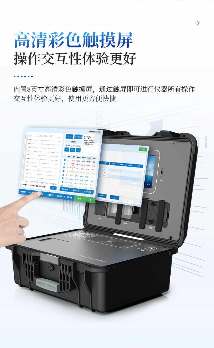 2)使用主流安卓7.1系统加8寸彩色大屏模式进行仪器操作,通过触屏即可进行仪器所有操作,方便快捷,像操作手机一样轻松上手;
